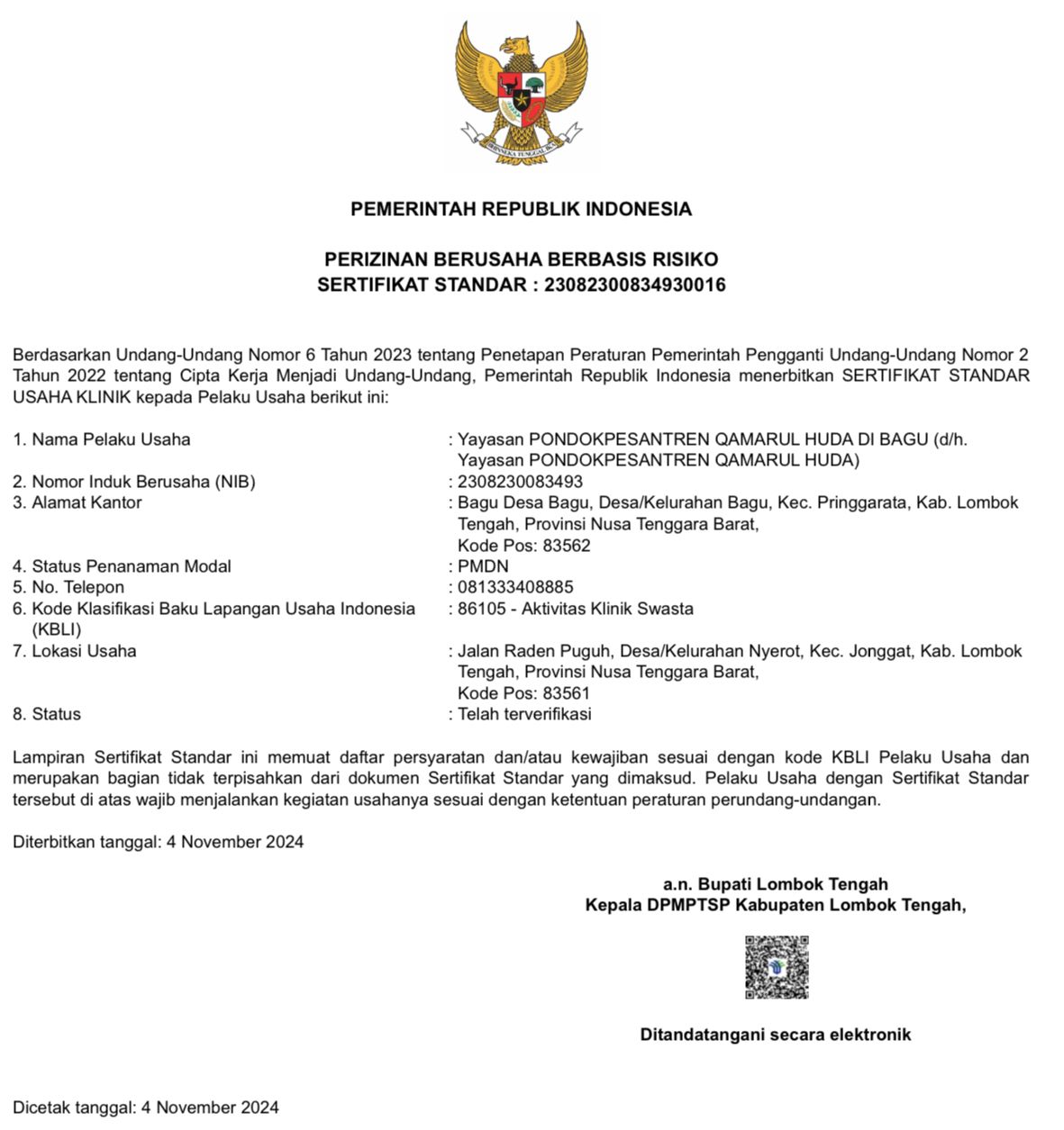 - Nama klinik : Klinik Utama Asy Syifa Qamarul Huda